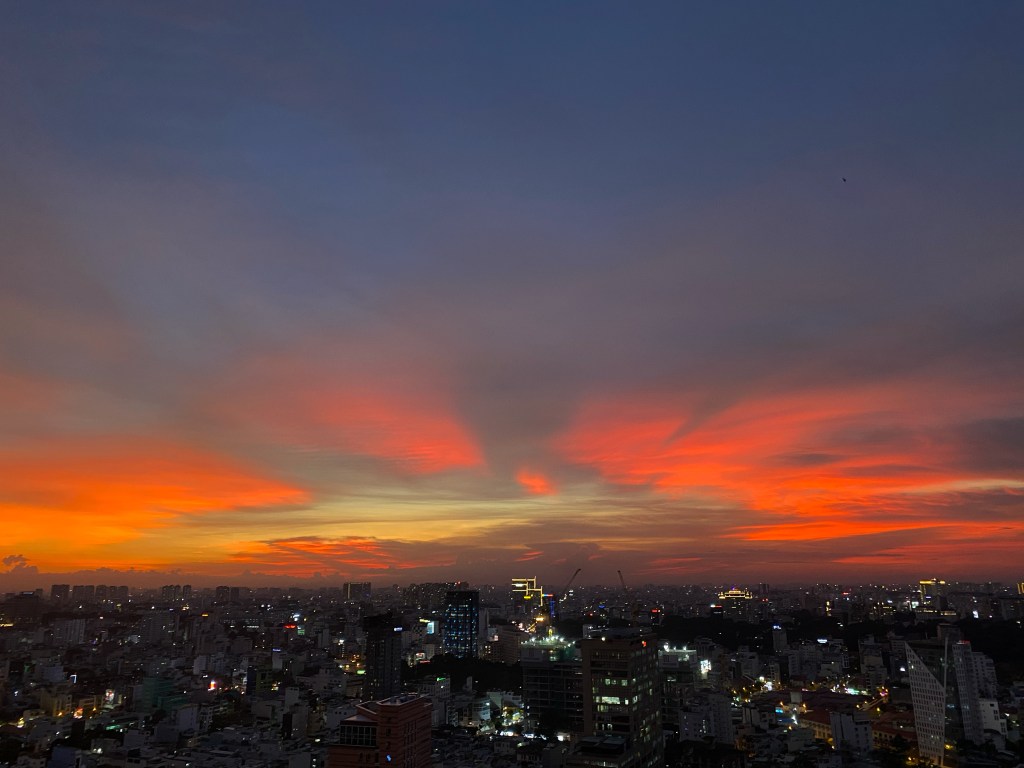Điểm nhấn hôm qua là Saigon có một chiều hoàng hôn xịn. Cảm giác như Thượng Đế tặng cho Saigon vì những ngày phải oằn mình để chống dịch , giãn cách ở nhà và nhiều tin không được vui với thông điệp: Mọi việc rồi cuối ngày cũng sẽ đẹp đẽ lại thôi
