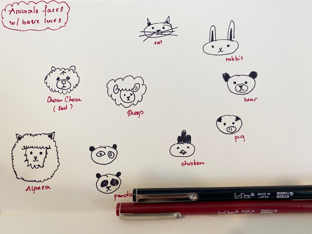 Lôi quyển sketch ra ngồi vẽ doodles animal faces with basic lines. Lúc vẽ rất chú tâm từng nét nên thấy xả stress, vẽ ra những con vật đáng yêu thấy vui. Những nét cơ bản nhưng chỉ cần chi tiết chấm phá khác nhau một chút sẽ ra những con vật khác nhau. Mình ở giai đoạn sao chép lại, chưa đến giai đoạn có thể tự tưởng tượng để vẽ. Nói chung cũng khá dễ thương.